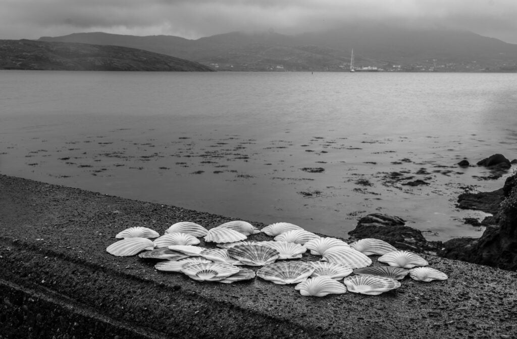 My reading had suggested that the philosophical concept of Phenomenology could help me, particularly ideas around the phenomenology of landscape . Allying the past with the present and seeking to understand and portray a cumulative association of antiquity with a living and enduring landscape provides context and affirmation for both. The archaeological and anthropological concept of ‘material culture’, the ‘ corporeal, tangible objects created, used, kept, and left behind by people’, all encouched within Western Isles’ unique combination of light, water and stone, provided me with all that I needed to try to create a ‘living landscape’. In this construction, people and their belief systems, from the past and the present , can be both imagined and interpreted. It may also be perceived that contemporary and ancient cultures can live co-terminously within this dimension; as in other culturally and spiritually rich world wide environments.