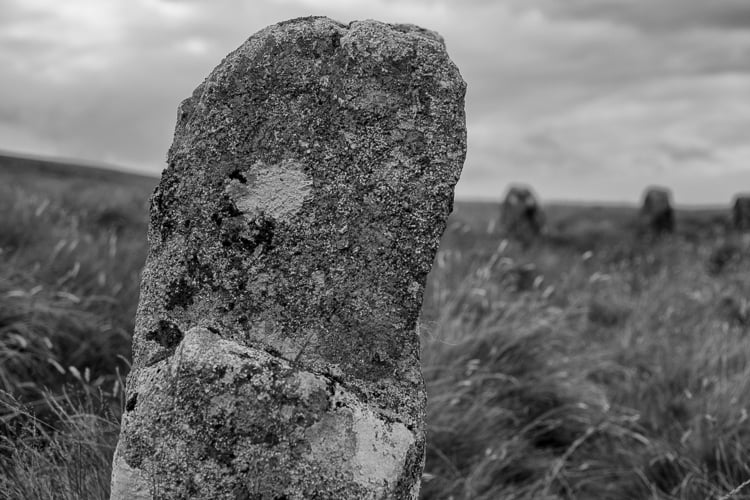 Grey Wethers is a double stone circle on the south-eastern slopes of Sittaford Tor on the western edge of Dartmoor. Wethers is another name for ‘sheep’ and local legend suggests the stones resemble sheep grazing on the Moor.