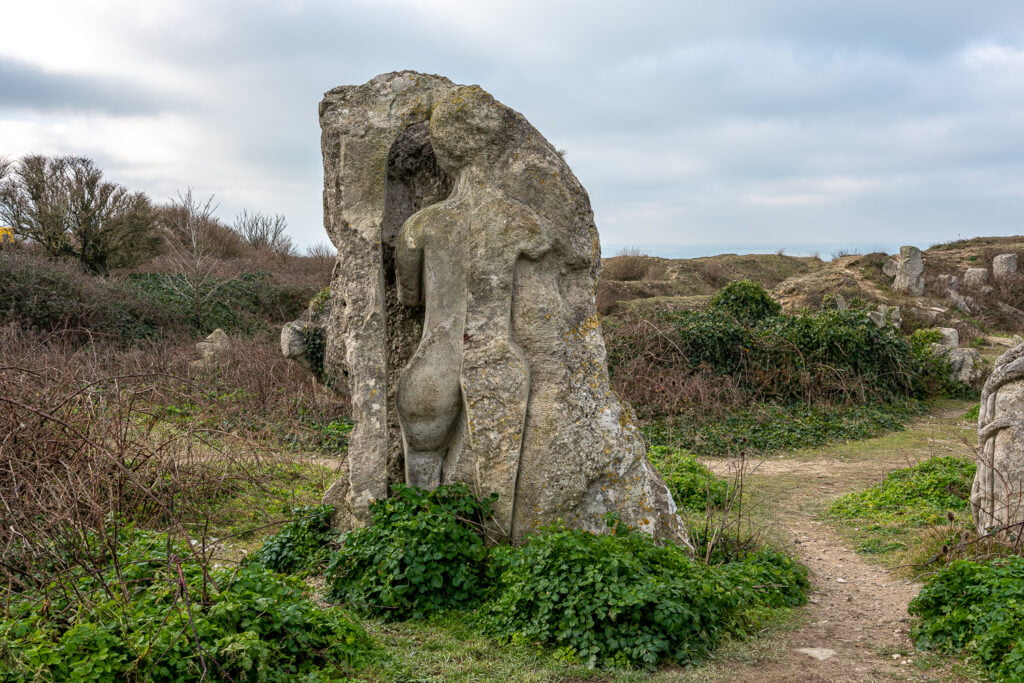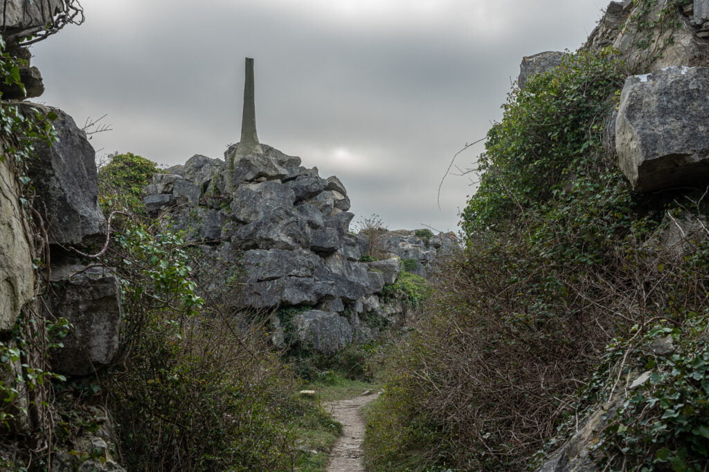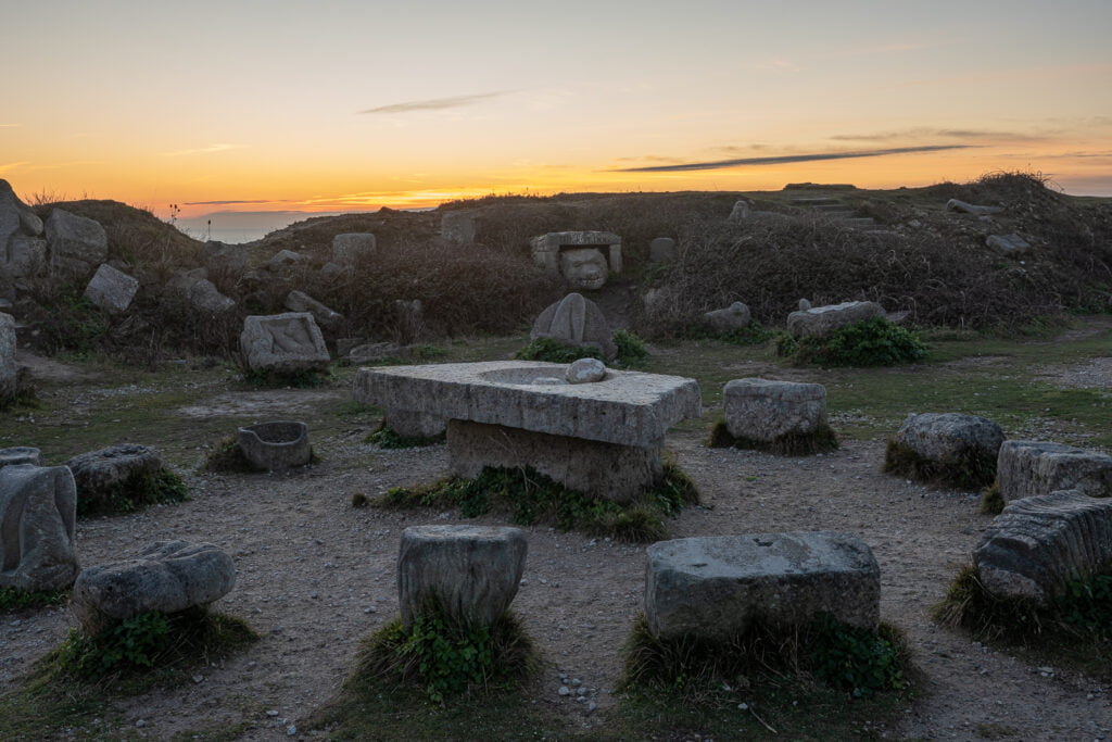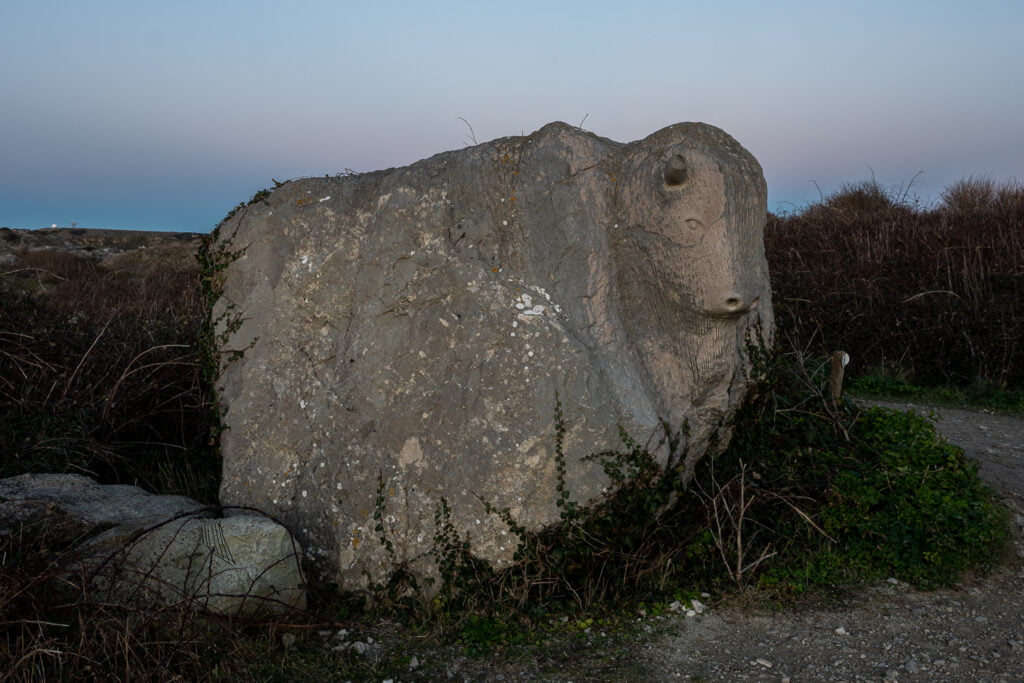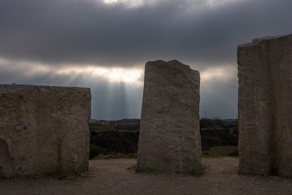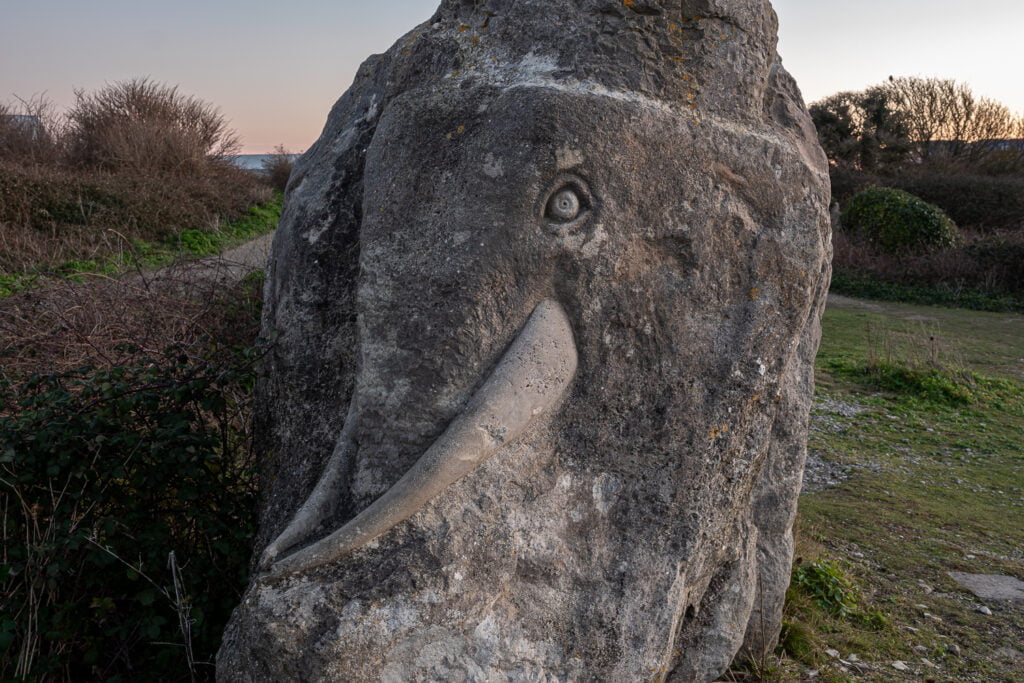 My interest in Portland revolves around The Tout Sculpture Park and Nature Reserve, the recently added Memory Stones ( a faux stone circle added in xxxx to the northern boundary of the Sculpture Park ), the ceremonial/monumental use of Portland stone in its churches particularly St George church and around the world, the High Angle battery foundations found by the Verne prison, and the general landscape which can be described as mostly bleak and windswept.