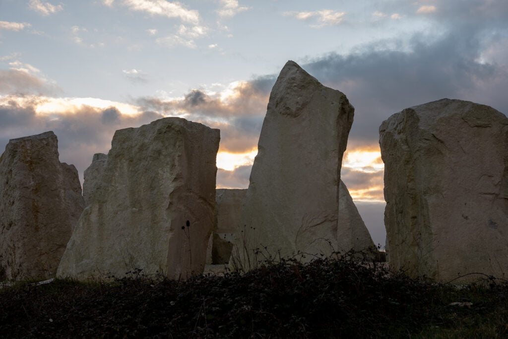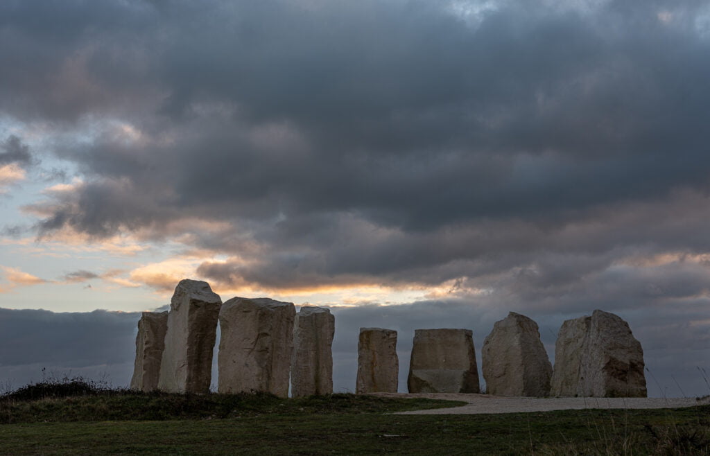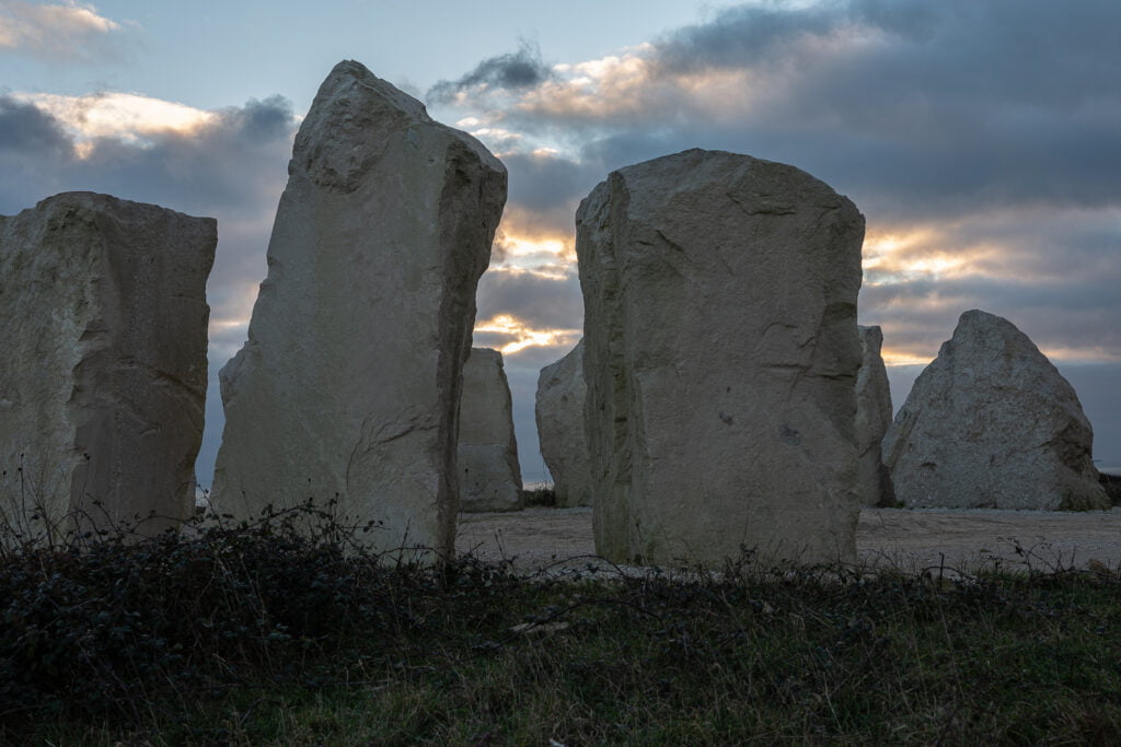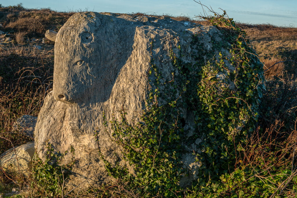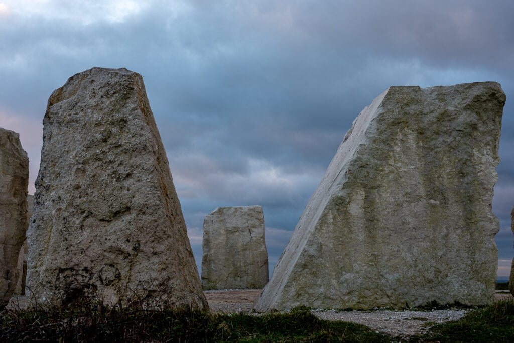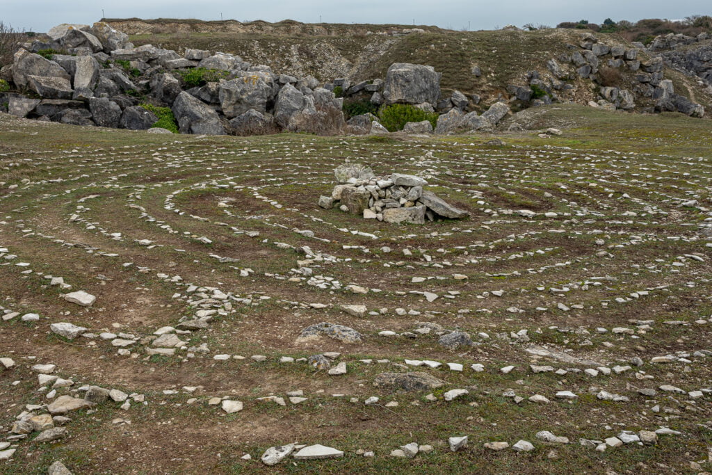 My interest in Portland revolves around The Tout Sculpture Park and Nature Reserve, the recently added Memory Stones ( a faux stone circle added in xxxx to the northern boundary of the Sculpture Park ), the ceremonial/monumental use of Portland stone in its churches particularly St George church and around the world, the High Angle battery foundations found by the Verne prison, and the general landscape which can be described as mostly bleak and windswept.