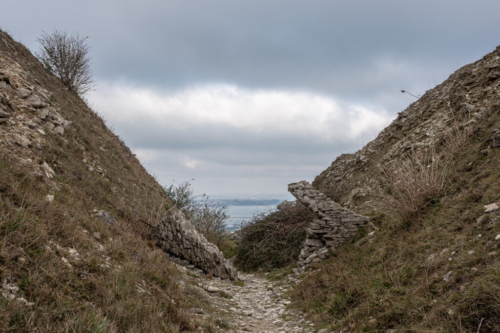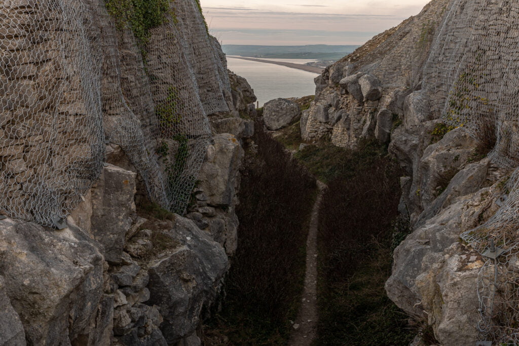 These photographs are some of those I took on my first foray into the trails of the Park. The sun set too rapidly and the light became intense with a wonderful sunset. The Park boundaries the west cliff face, looking back towards Chesil Beach and the mainland. Some of the photographs include that view.