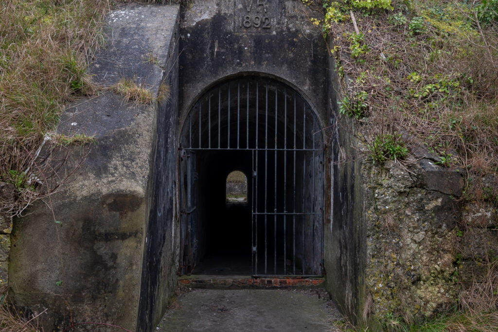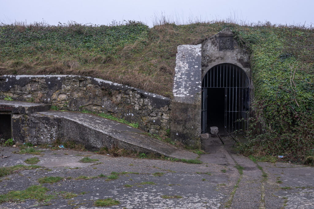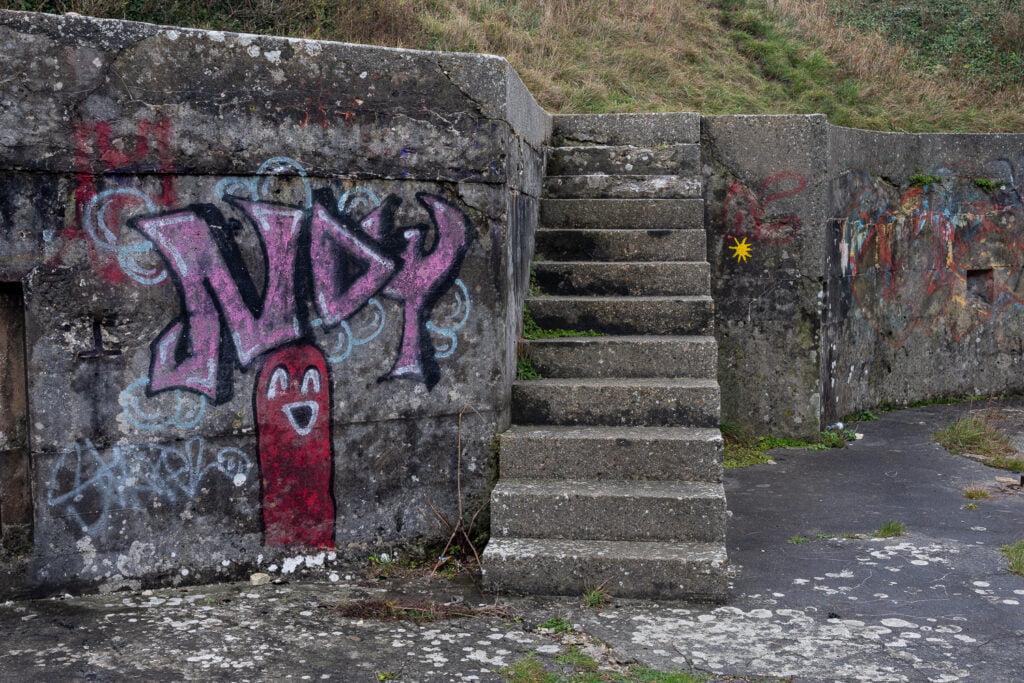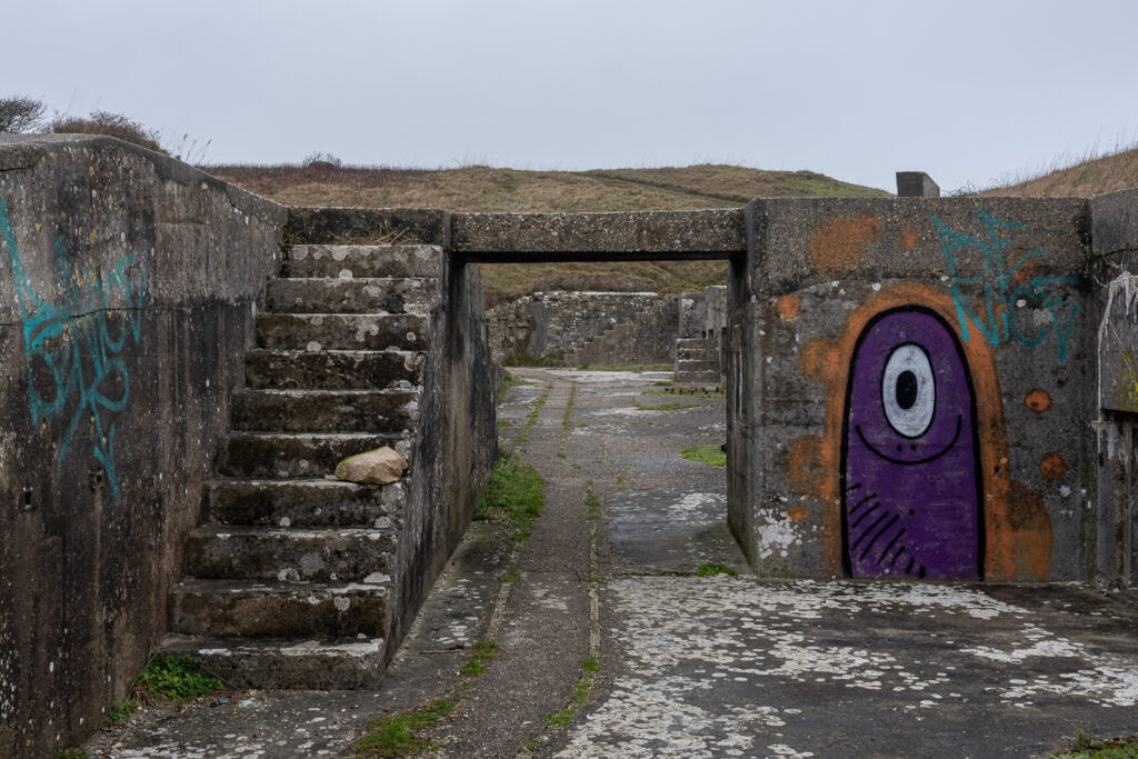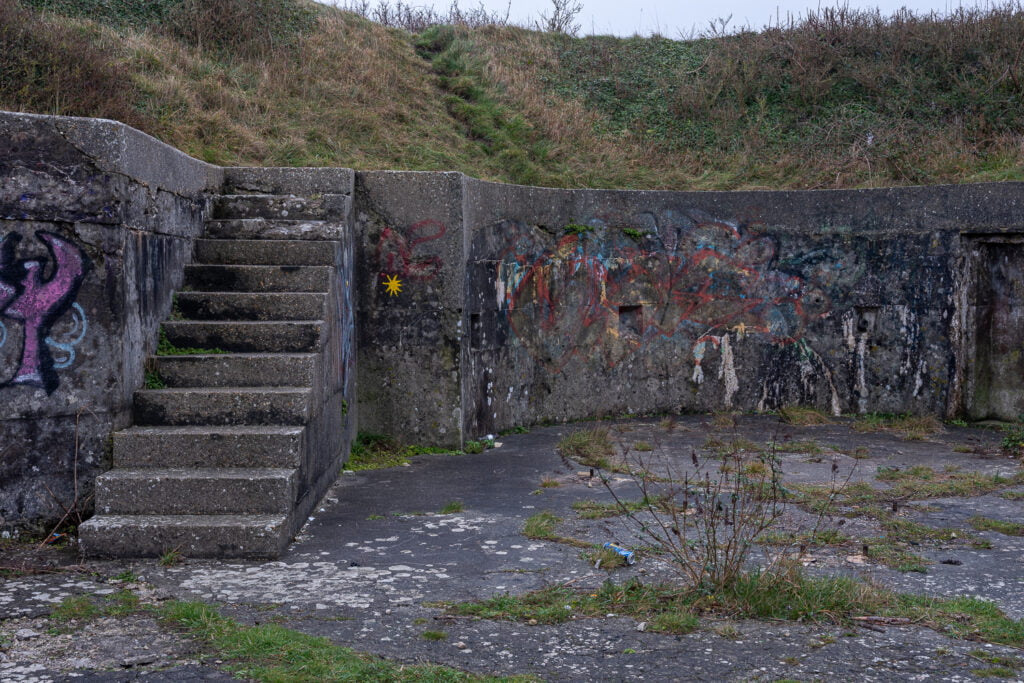 Later I returned to the location of the remains of the High Angle Battery, adjacent to the Verne Citadel. This was formerly the site of a series of large gun emplacements which could fire shells up to 6 miles in any direction. They were originally intentioned to fire high into the sky and to drop shells onto the decks of enemy ships, avoiding the re-inforced metal of the hulls of enemy warships. As military vessels became faster their use became limited. Proposed originally in 1890 they were scrapped in 1910, the guns sold to a local contractor who blew them with dynamite up and took them away. The battery became a tourist attraction but has fallen into decay. The series of tunnels from which the guns were provided with armaments are reputed to be haunted. I find its abondonment and subsequent decay interesting.