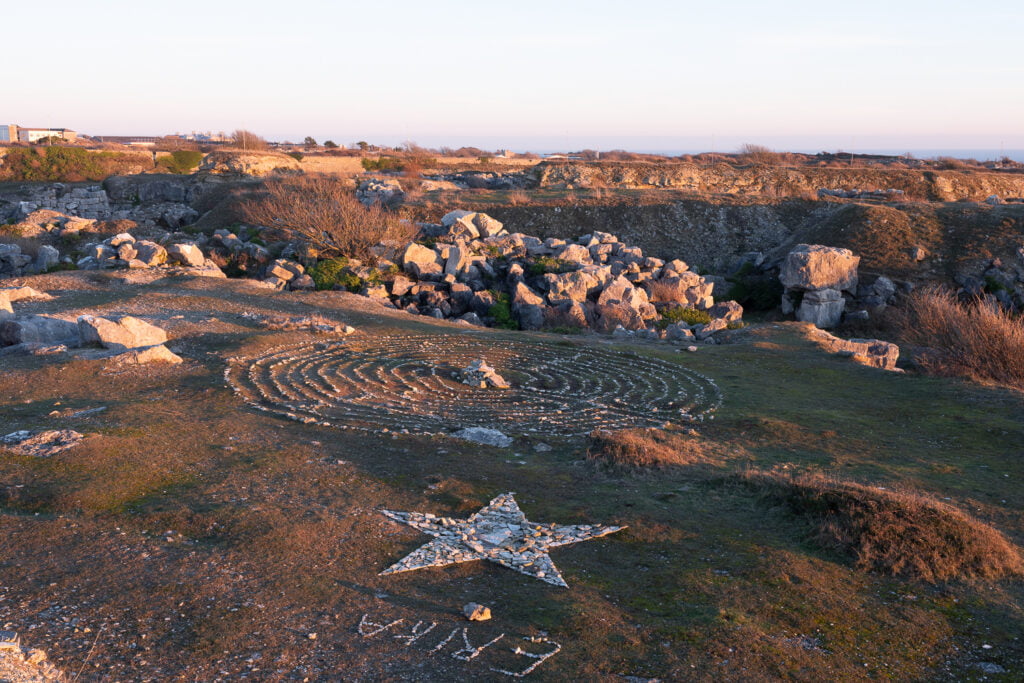 There are installations scattered across the Park. This is a maze, below are a star and a name and a date.