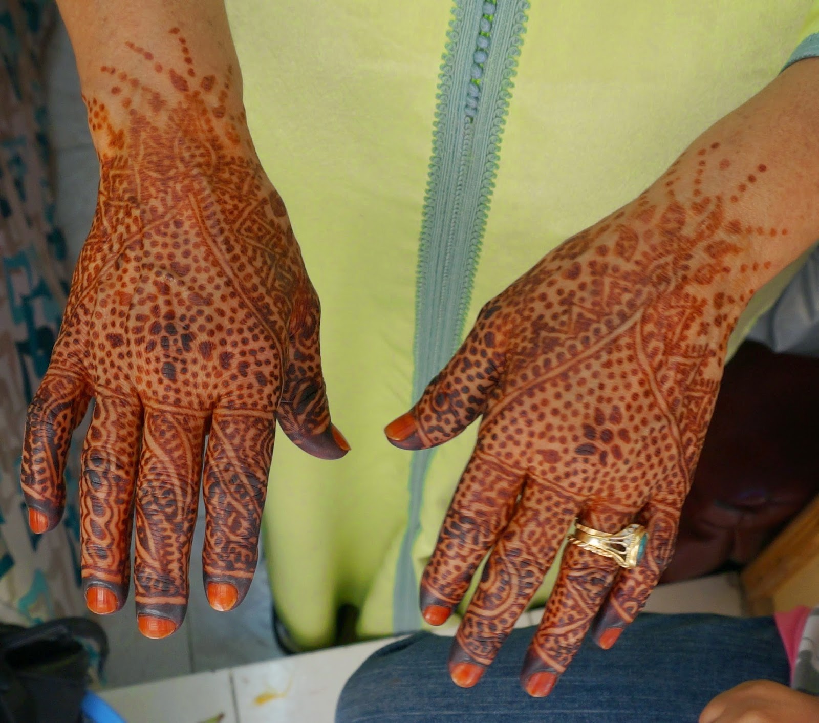 | This woman identified her henna as l-ḥinna dyal ‘Aisha, ‘the henna of ‘Aisha.’ See another example of henna for ‘Aisha in this post. |