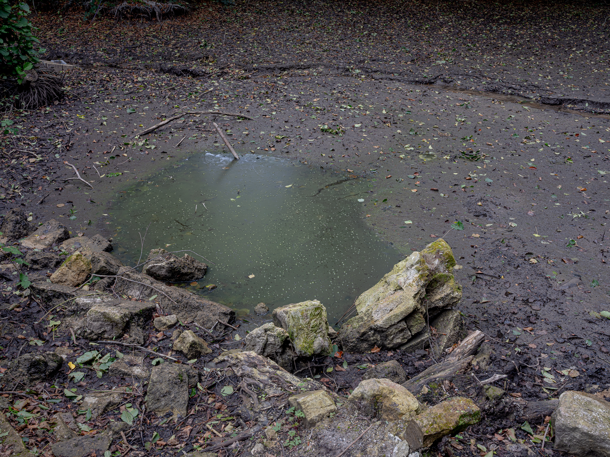 Currently,  the ponds have become ‘disturbed’ and silted up,  giving the milky appearance within the photographs.