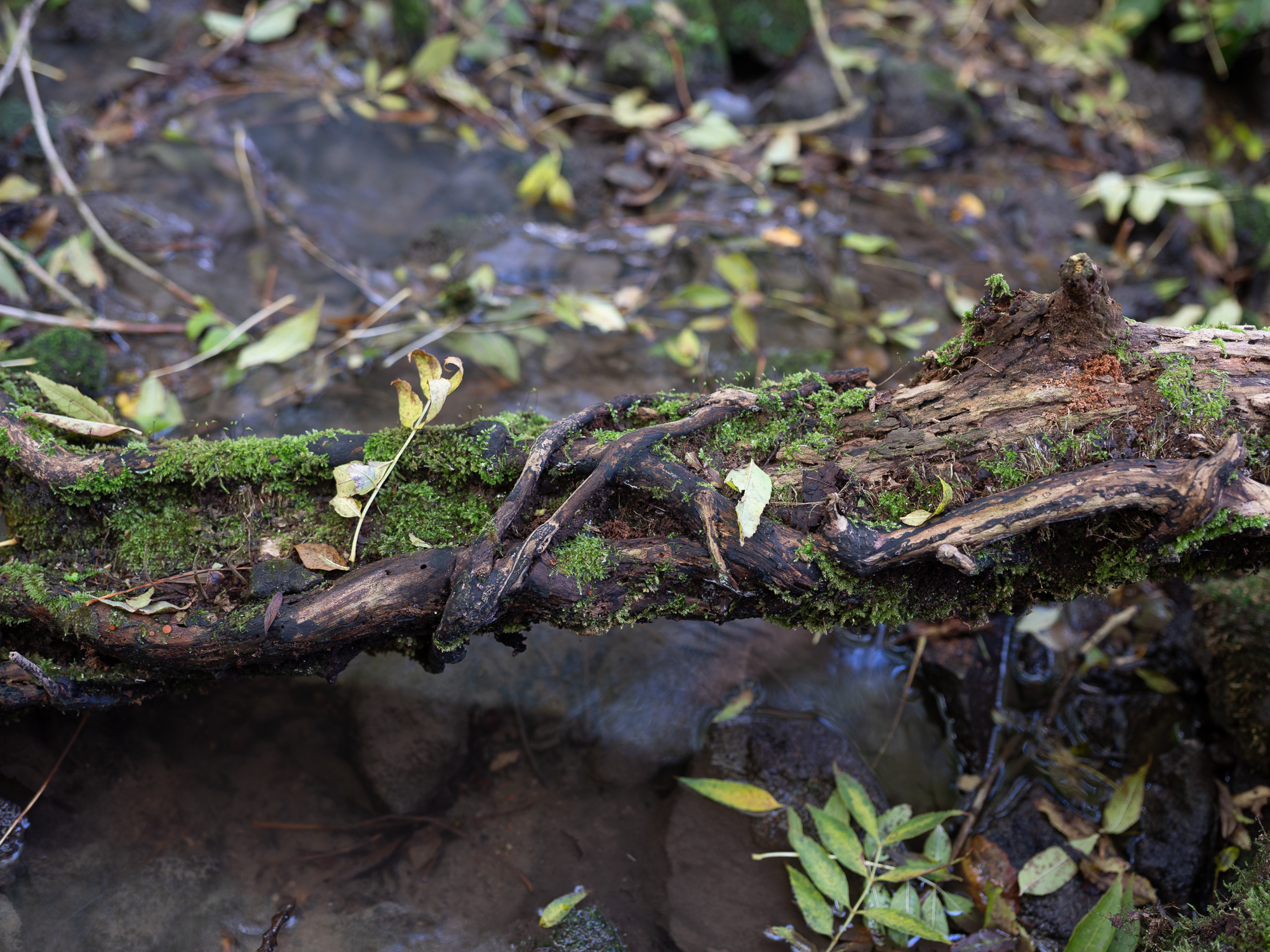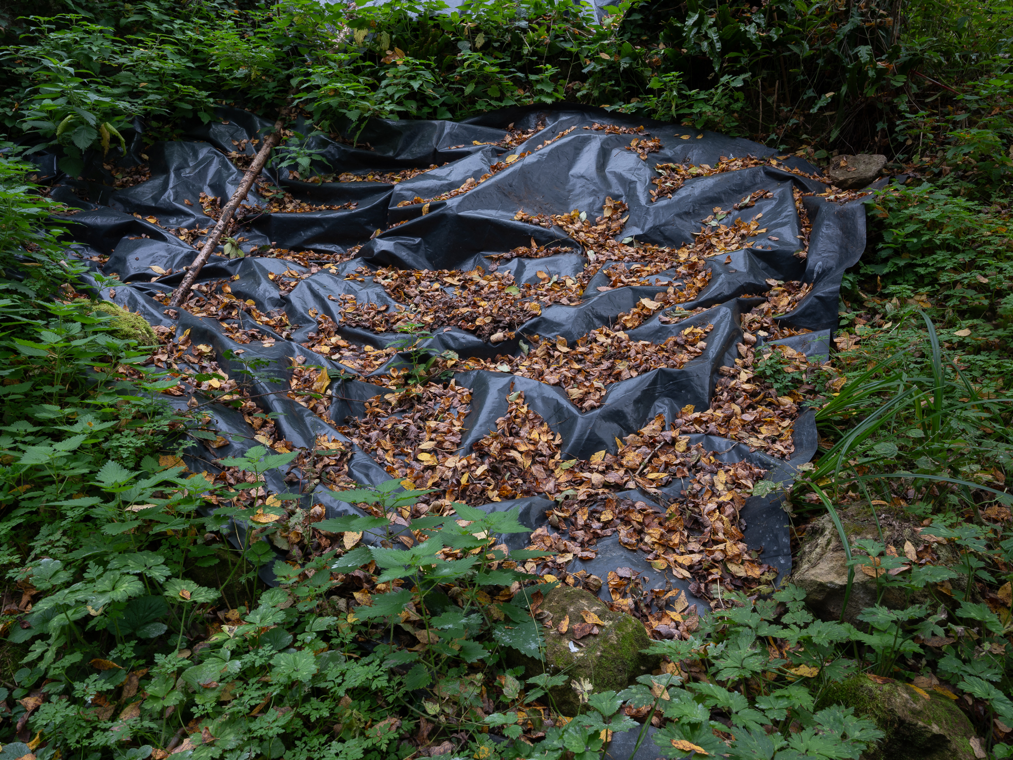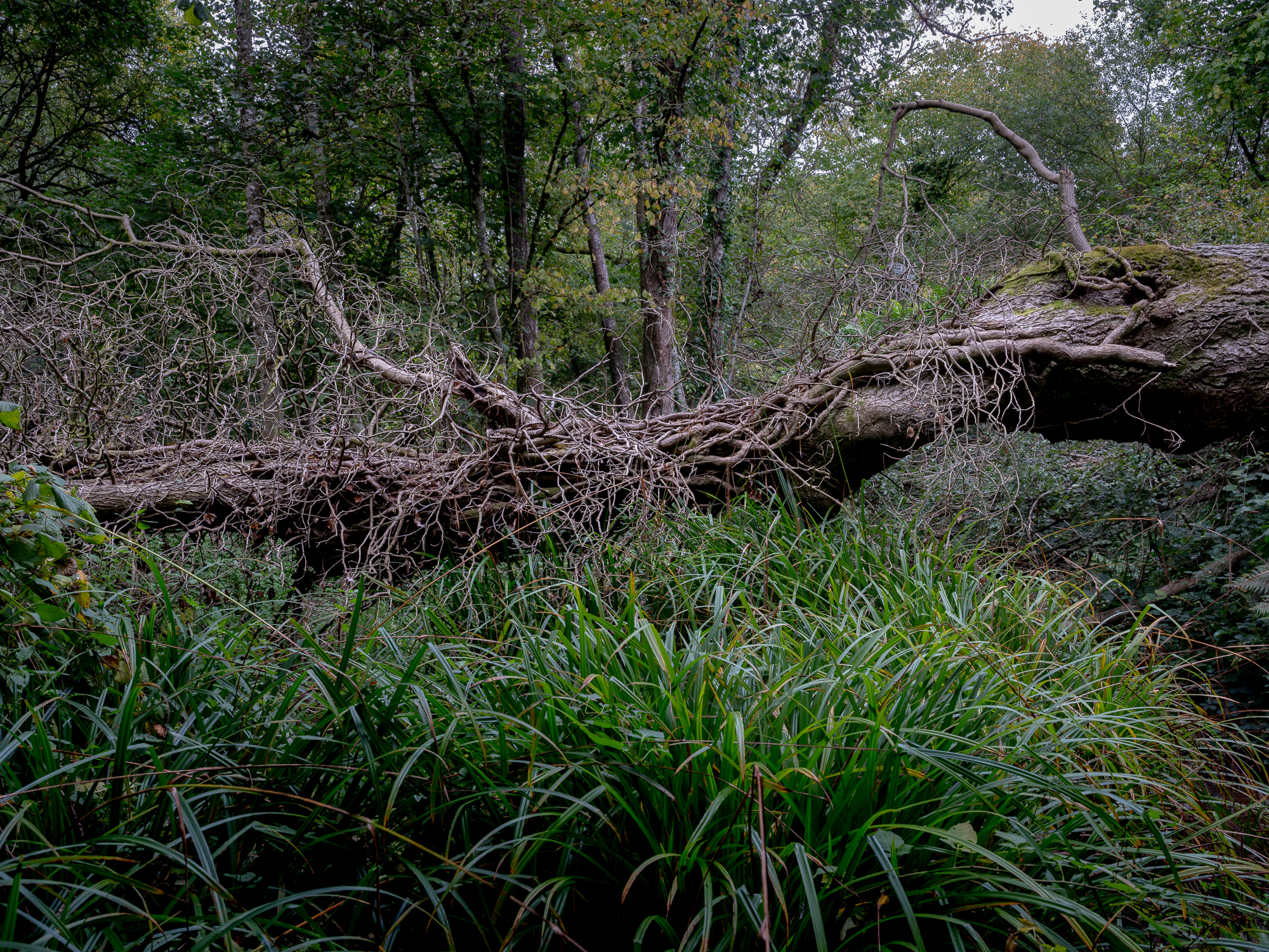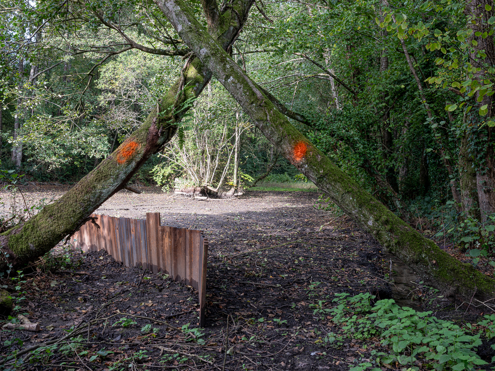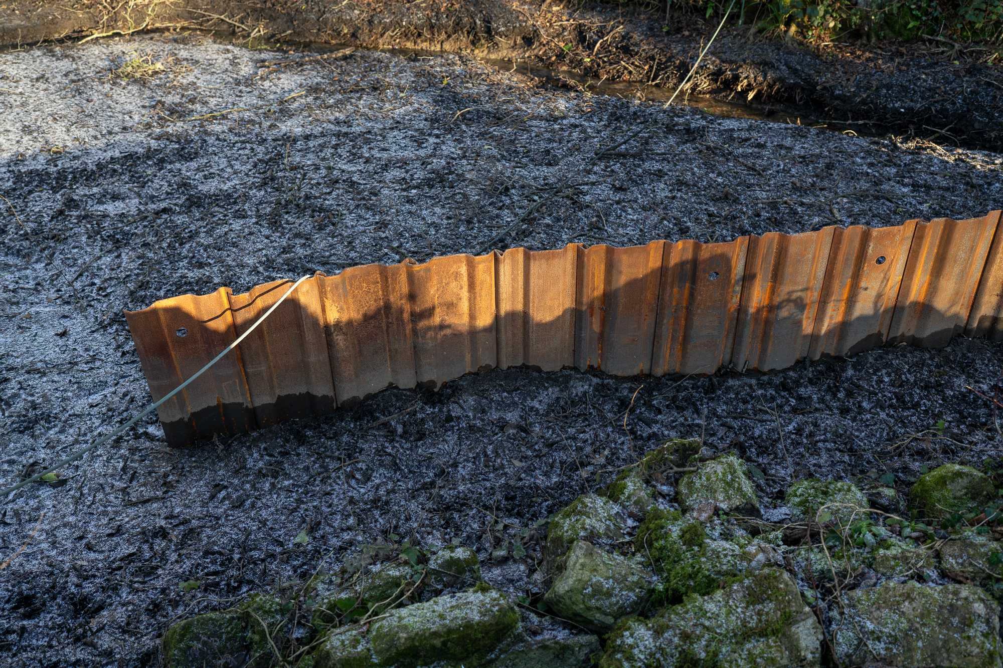 I have concentrated on how I see the landscape;  the trees,  the water,  the gates,  the tape which David uses to guide walkers through it,  the ruins of the forge,  the emergent river,  the weirs,  the foliage,  the syphon-pipes David uses,  the waterfall at the heart of the water system,  David’s incipient orchard…all of which are deconstructions which eventually I can re-construct to form a composite landscape which suits my vision.  I am increasingly of an opinion that those desconstructions vary from visit to visit;  although there is much visual overlap,  i see new things on every visit.  Whether it is me changing or the landscape changing with David’s efforts is an interesting discussion.  I am sure it is both.