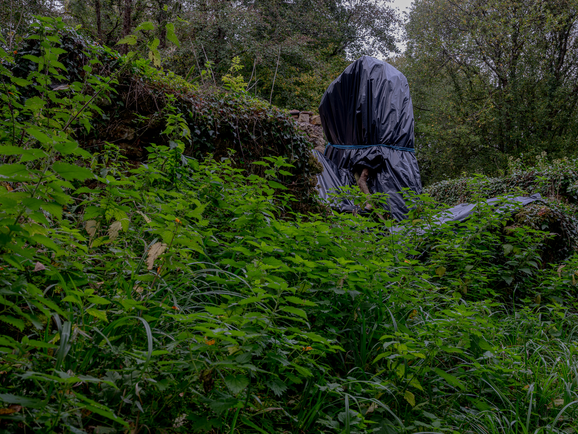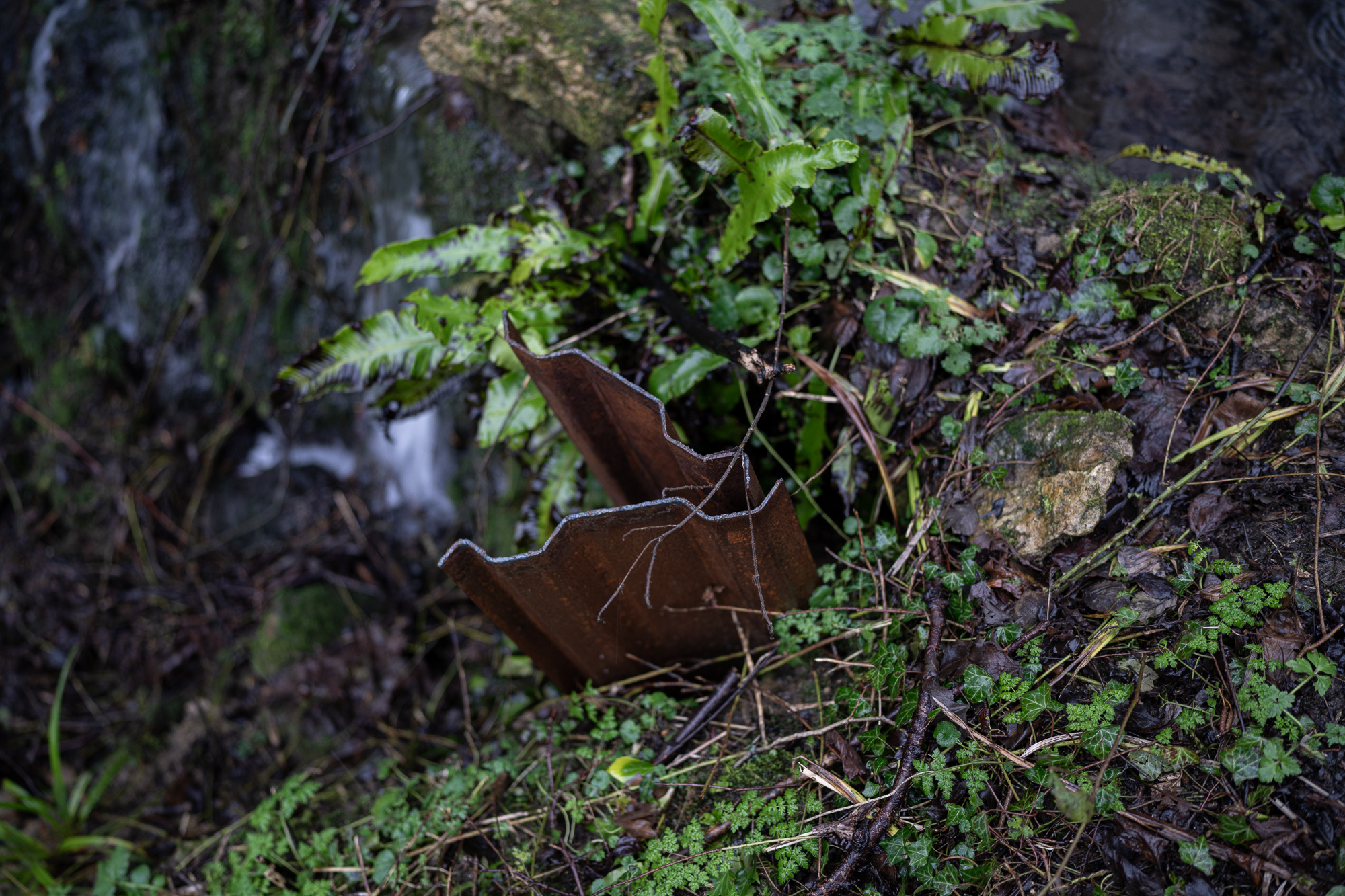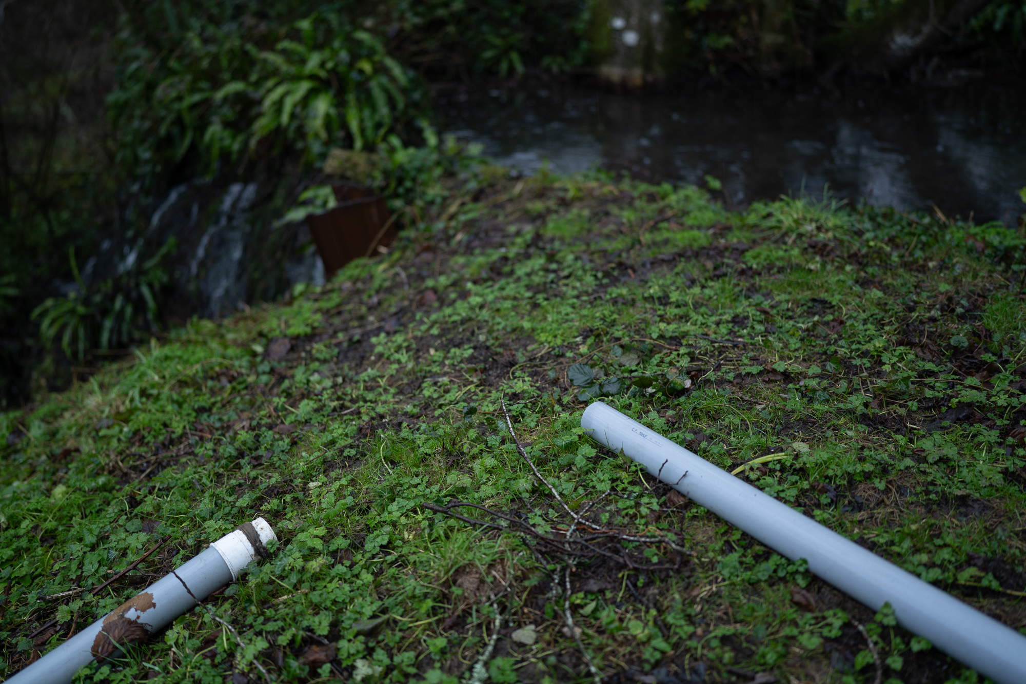 The first part of this submission features photographs of people collecting the spring water for their personal use. The  ‘water gatherers’,  as I have called them, are braving the cold weather of January and February, with their water collected in plastic and glass containers. These photographs were taken with a Nikon DSLR camera and a medium format digital camera.  The second series of images follows the water course from the spring through man-made culverts, streams, waterfalls and ponds until it leaves the owners land beneath the double strands of barbed wire which delineate the boundary. The series concludes with the spring again, and a photograph of orchids which have been left as an offering.