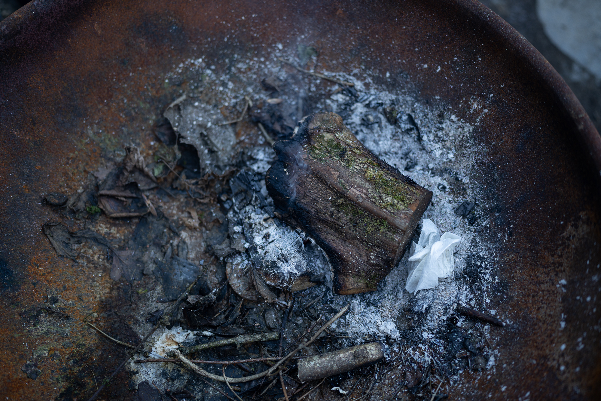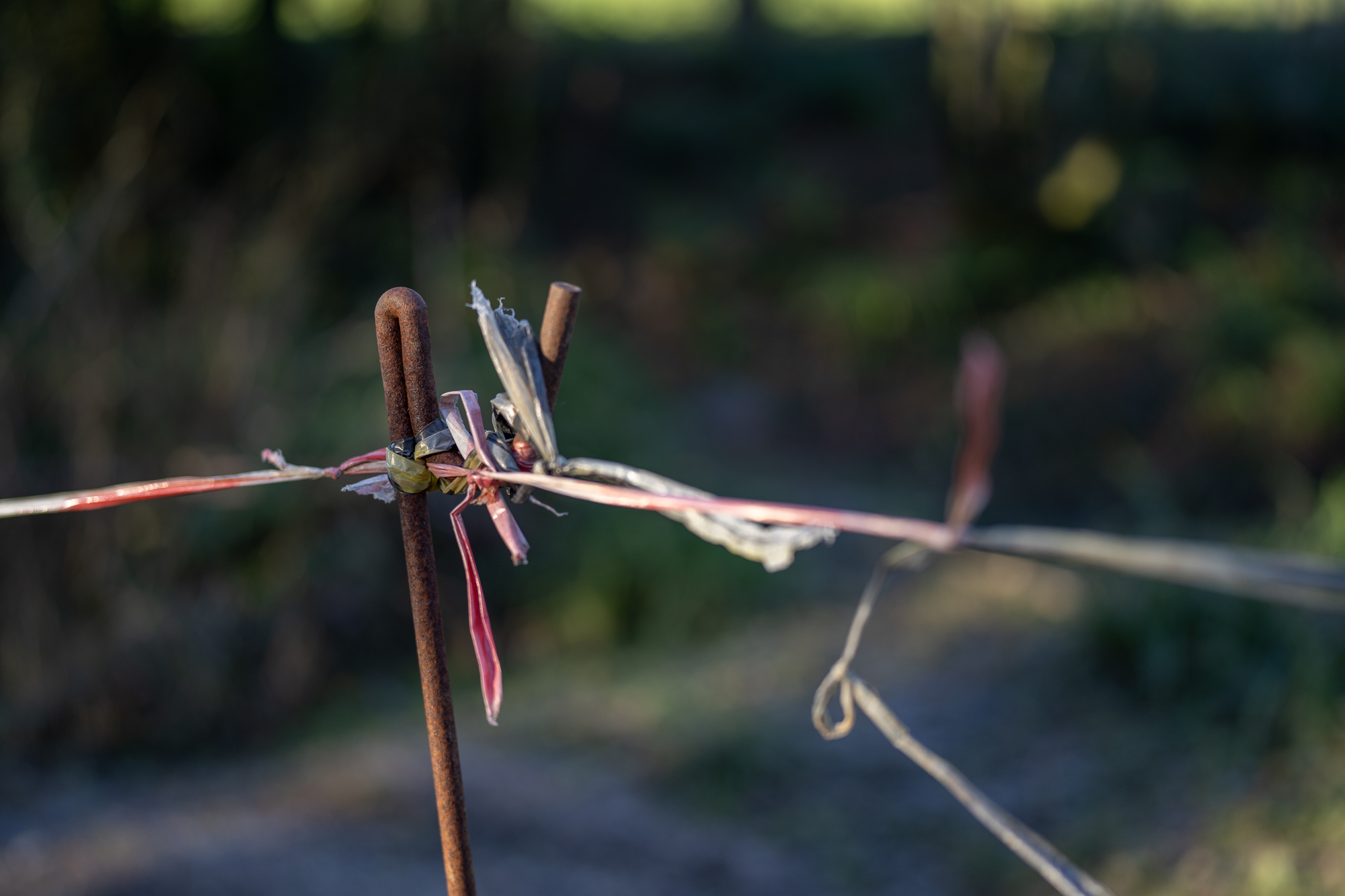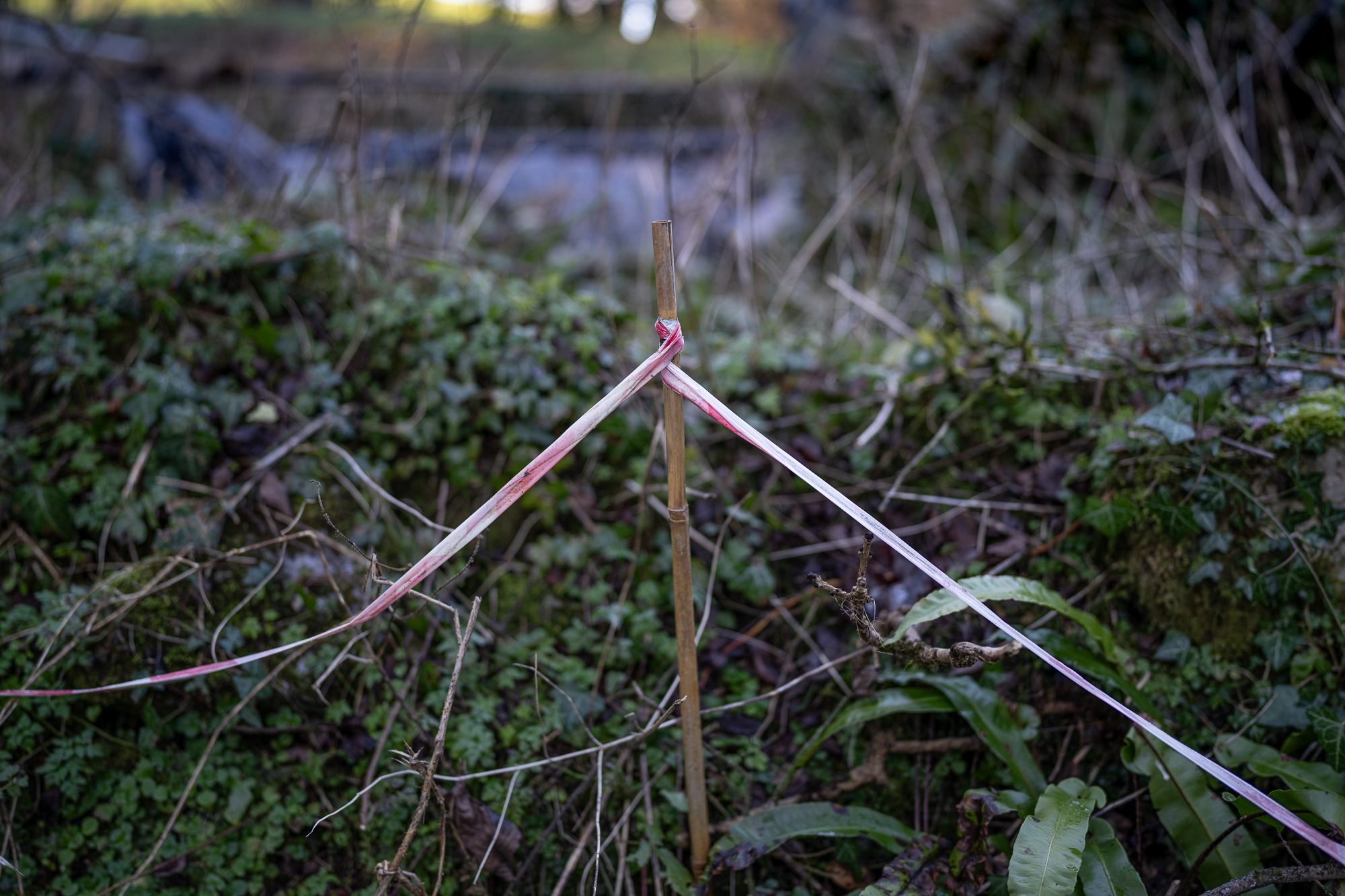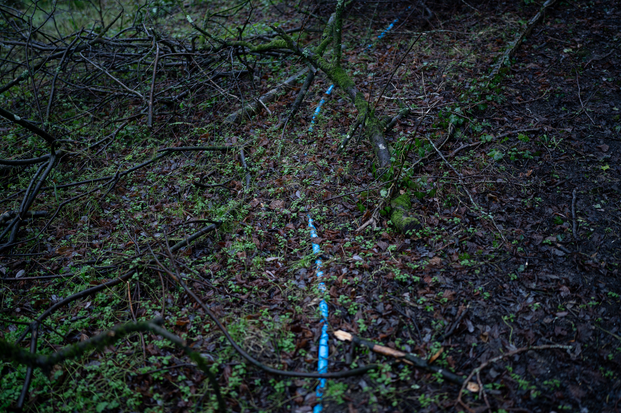 The first part of this submission features photographs of people collecting the spring water for their personal use. The  ‘water gatherers’,  as I have called them, are braving the cold weather of January and February, with their water collected in plastic and glass containers. These photographs were taken with a Nikon DSLR camera and a medium format digital camera.  The second series of images follows the water course from the spring through man-made culverts, streams, waterfalls and ponds until it leaves the owners land beneath the double strands of barbed wire which delineate the boundary. The series concludes with the spring again, and a photograph of orchids which have been left as an offering.