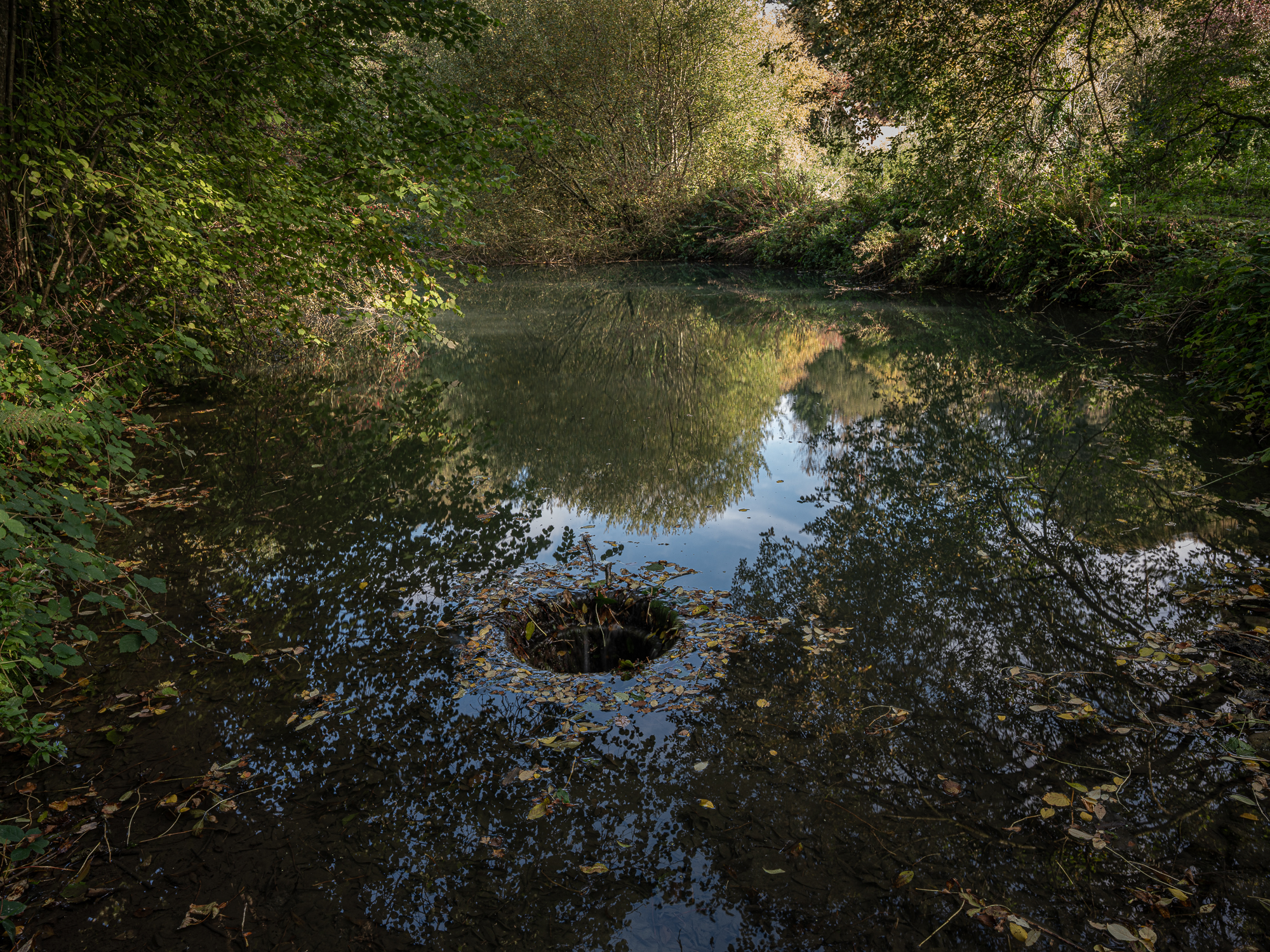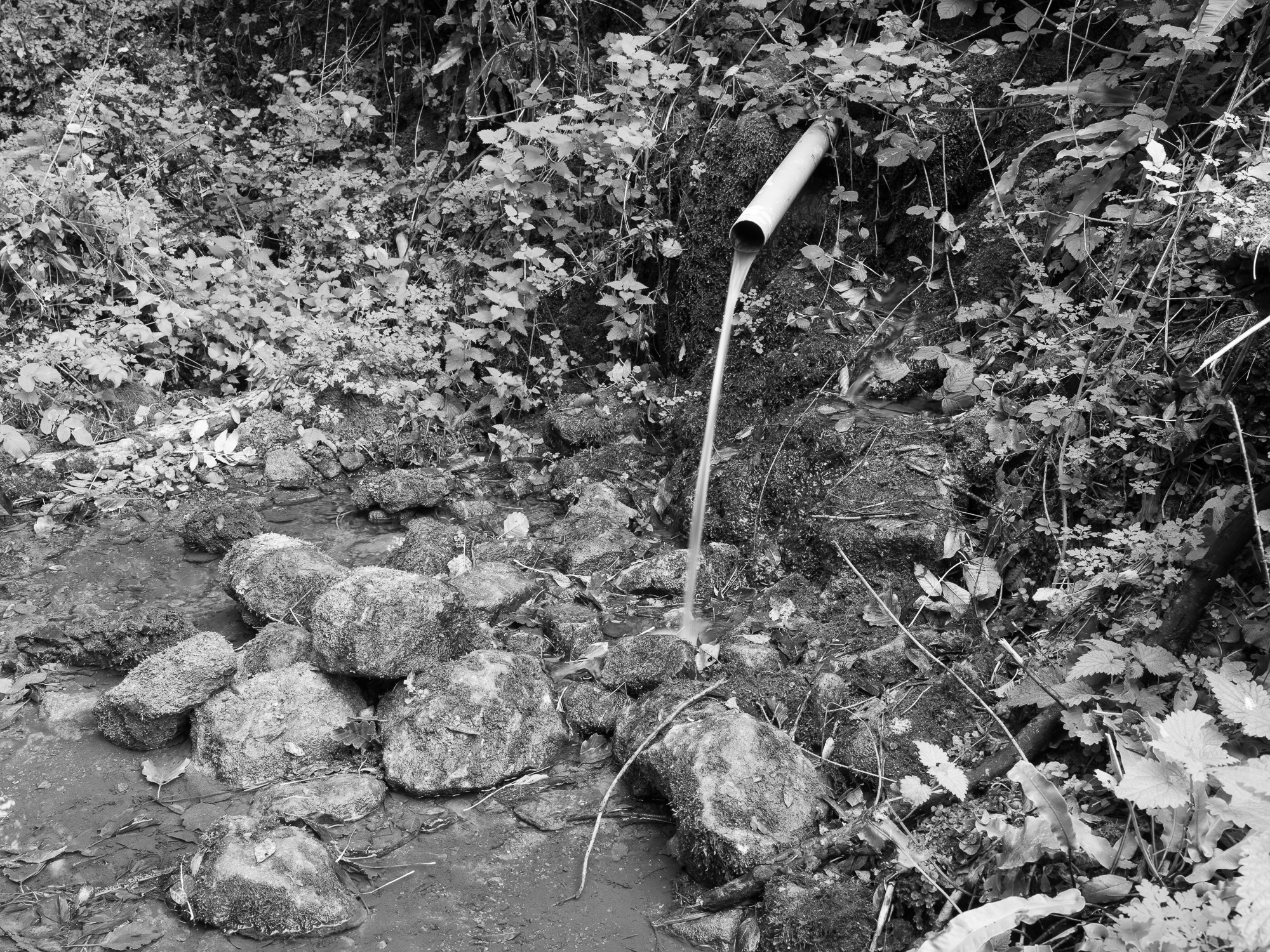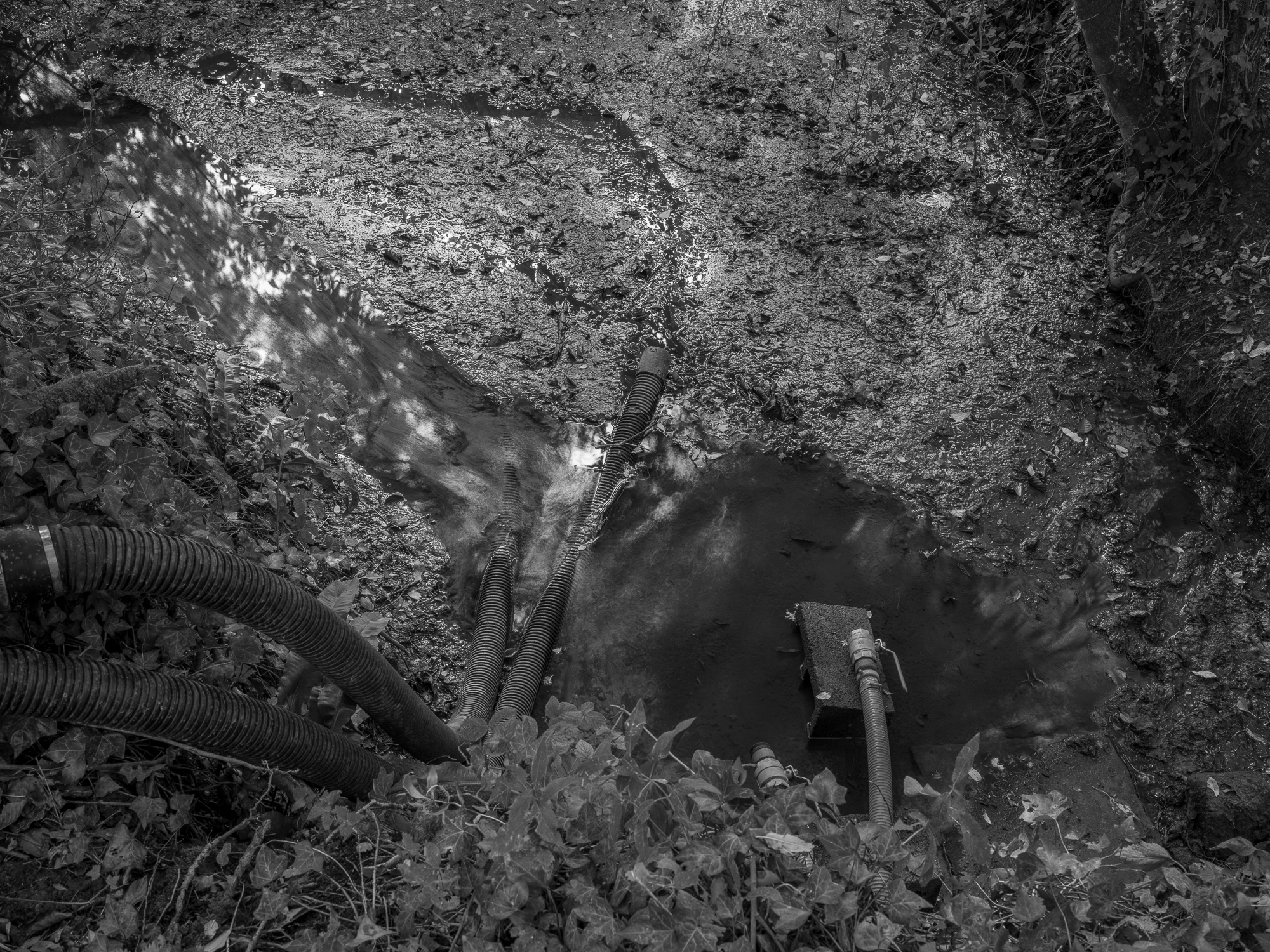 Originating from the earth as a sacred spring, the water course quickly becomes the focus of a post-industrial landscape, before emerging as a young river.  The project is also a study of people who collect this water for personal use, preferring the nature of this water rather than that which flows through their taps at home. Some of these people identify with an ‘alternative’ view of living, which is congruent with the spring’s ancient roots; despite being named after a Christian saint, the spring stubbornly retains its pagan heritage. Many of the people who take the water tell me of its identity; that it has memory, has consciousness and is a living creation. Many identify the nature of this water with research by pseudo-scientists Masuru Emoto and Veda Austin, who photographed frozen water crystals to elicit examples of that water’s varying response to external stimuli.