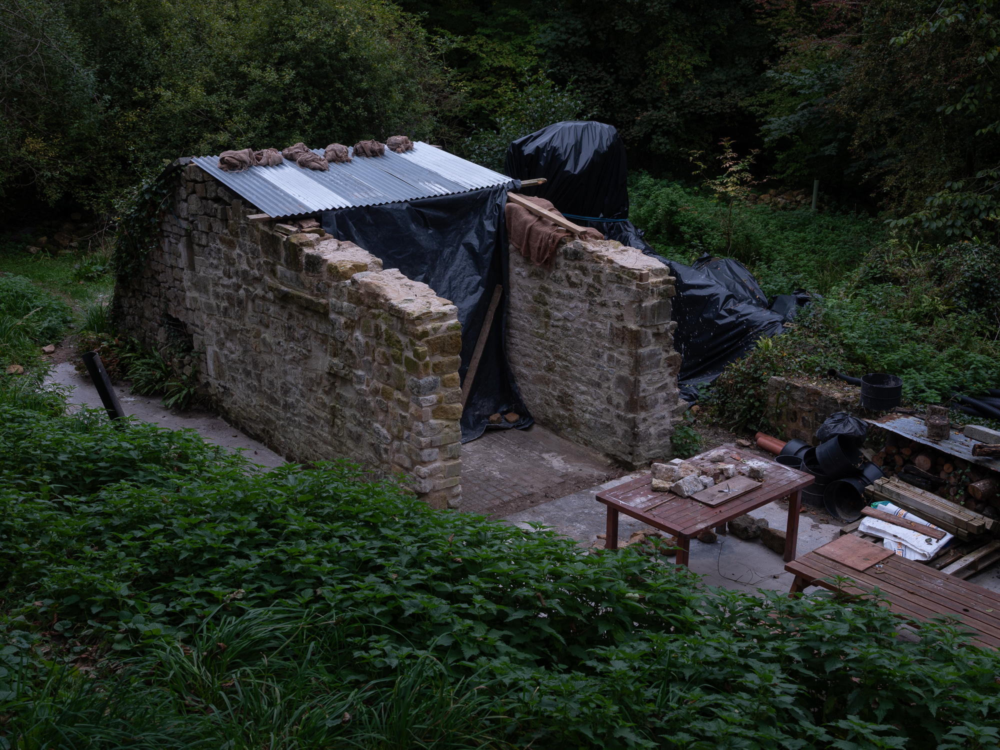 At the bottom of the water cascade the remains of the actual mill workshops are in extreme disrepair and are unsafe.  There is little left of the workshops other than external walls.  The history of edge tool manufacture is interesting,  especially in the west country,  which was isolated from the rest of England before the arrival of the railways ( the canals mostly reached no further west than Bristol ).   Somerset in particular had a strong edge tool industry until the collapse of English agriculture in the 1870’s.