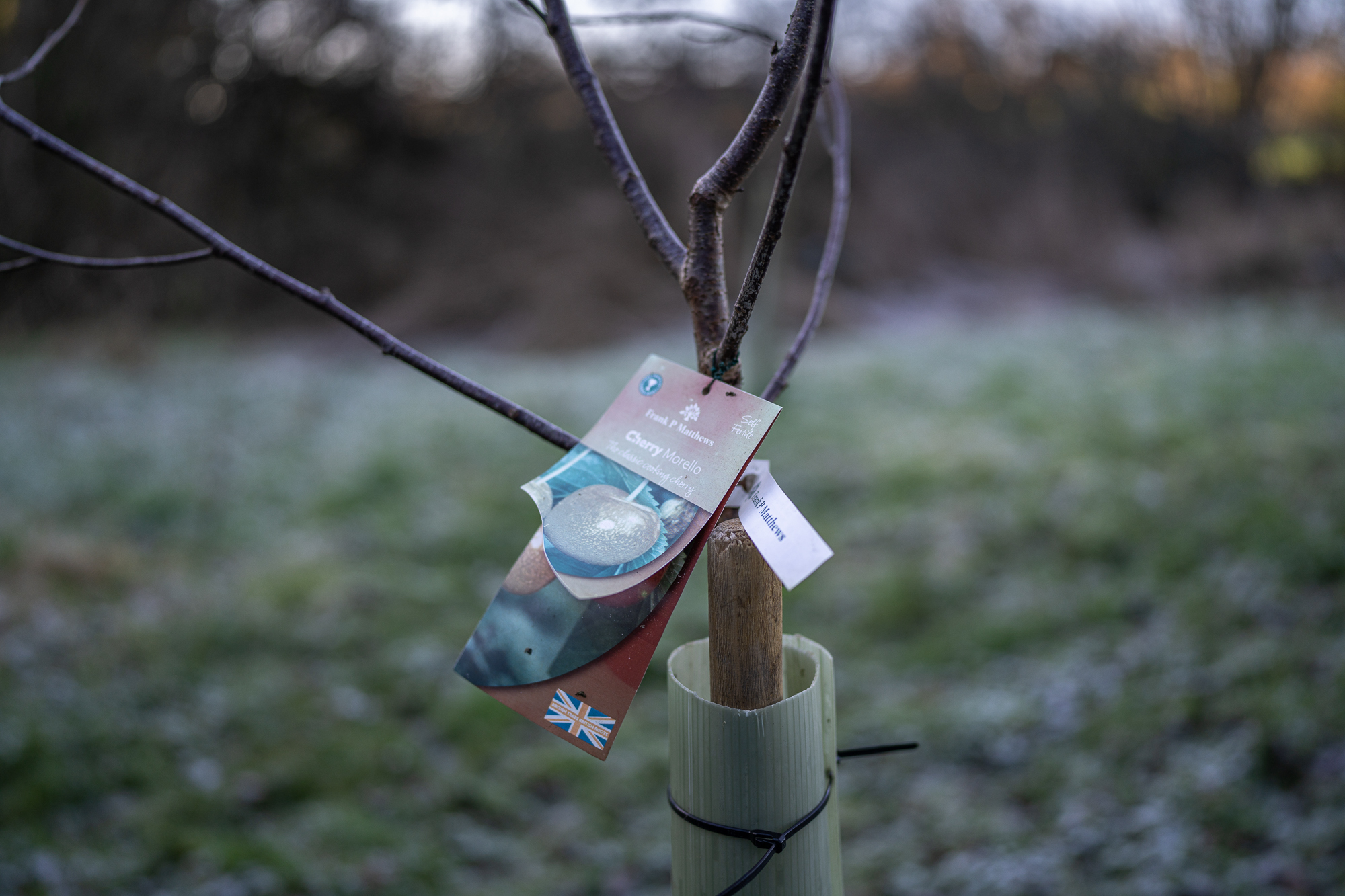 The lower part of the complex,  around the mill workings and further down to where the springs and ponds flow finally combined as a unified waterway,  perhaps for the first time actually becoming the river Sheppey,  David has developed the landscape further,  planting new plum, pear and cherry trees to supplement the ancient indigenous trees,  maintaining a sward of cut grass which can be used recreationally as he wanted and a spot where he pitches his tent for sleeping.