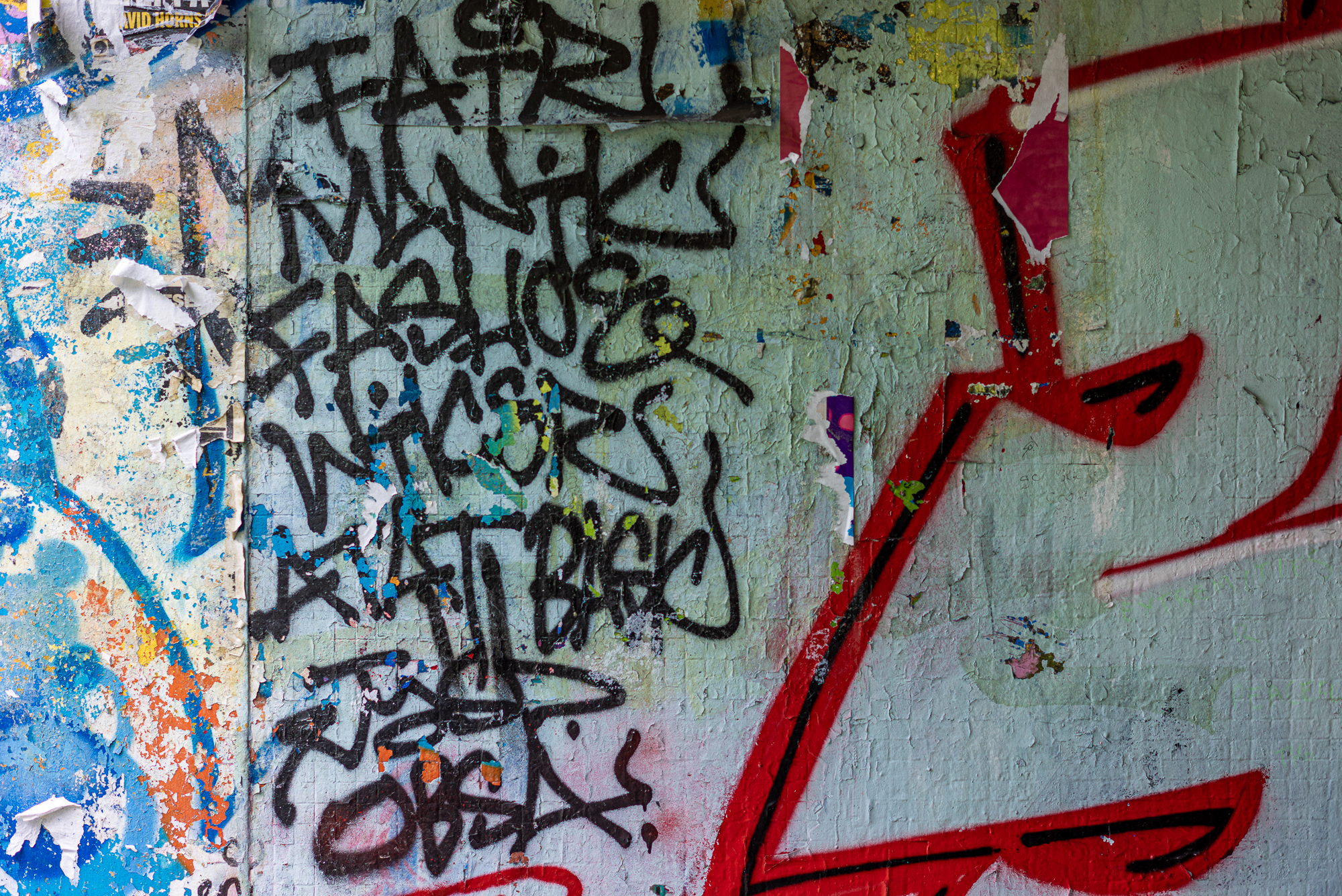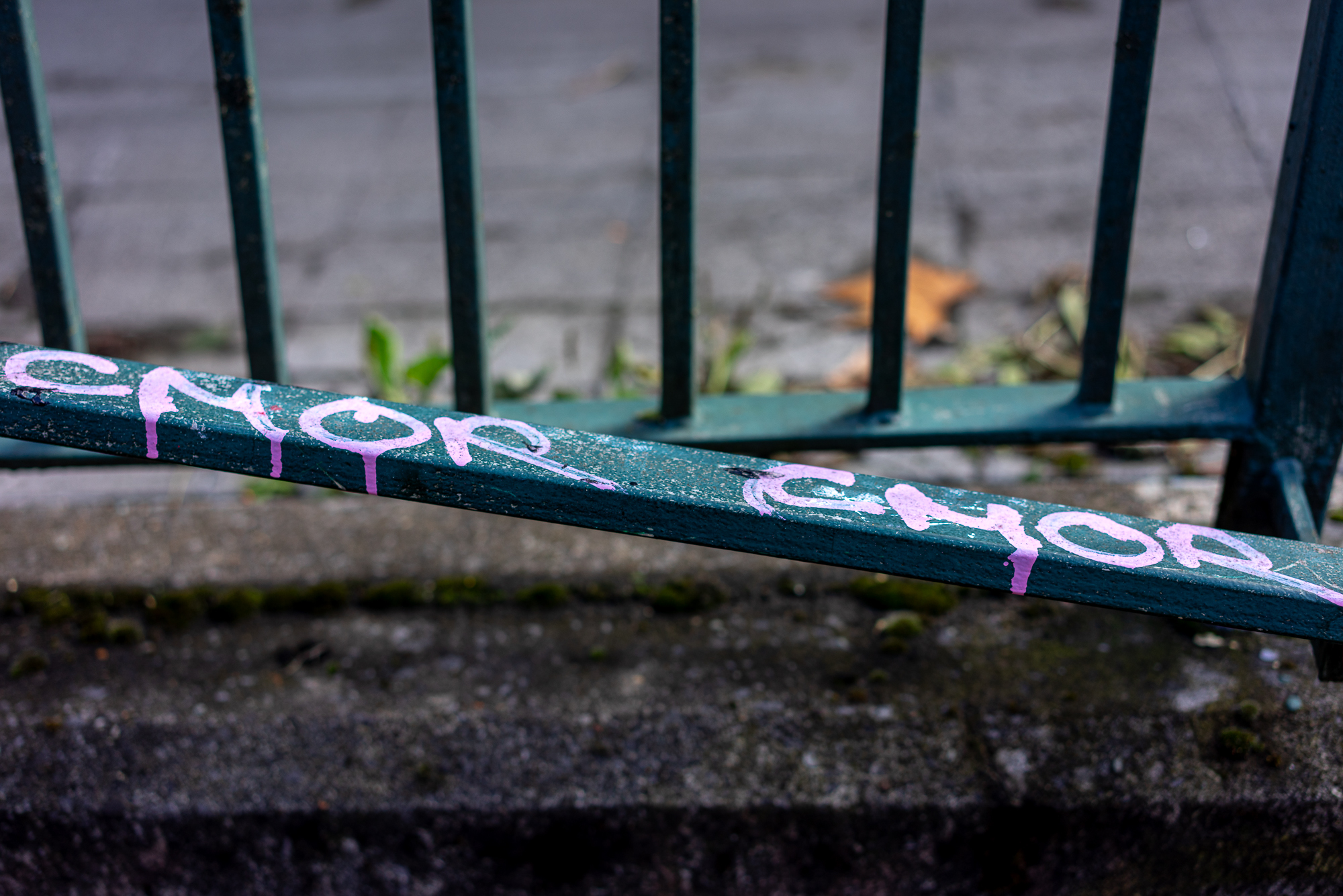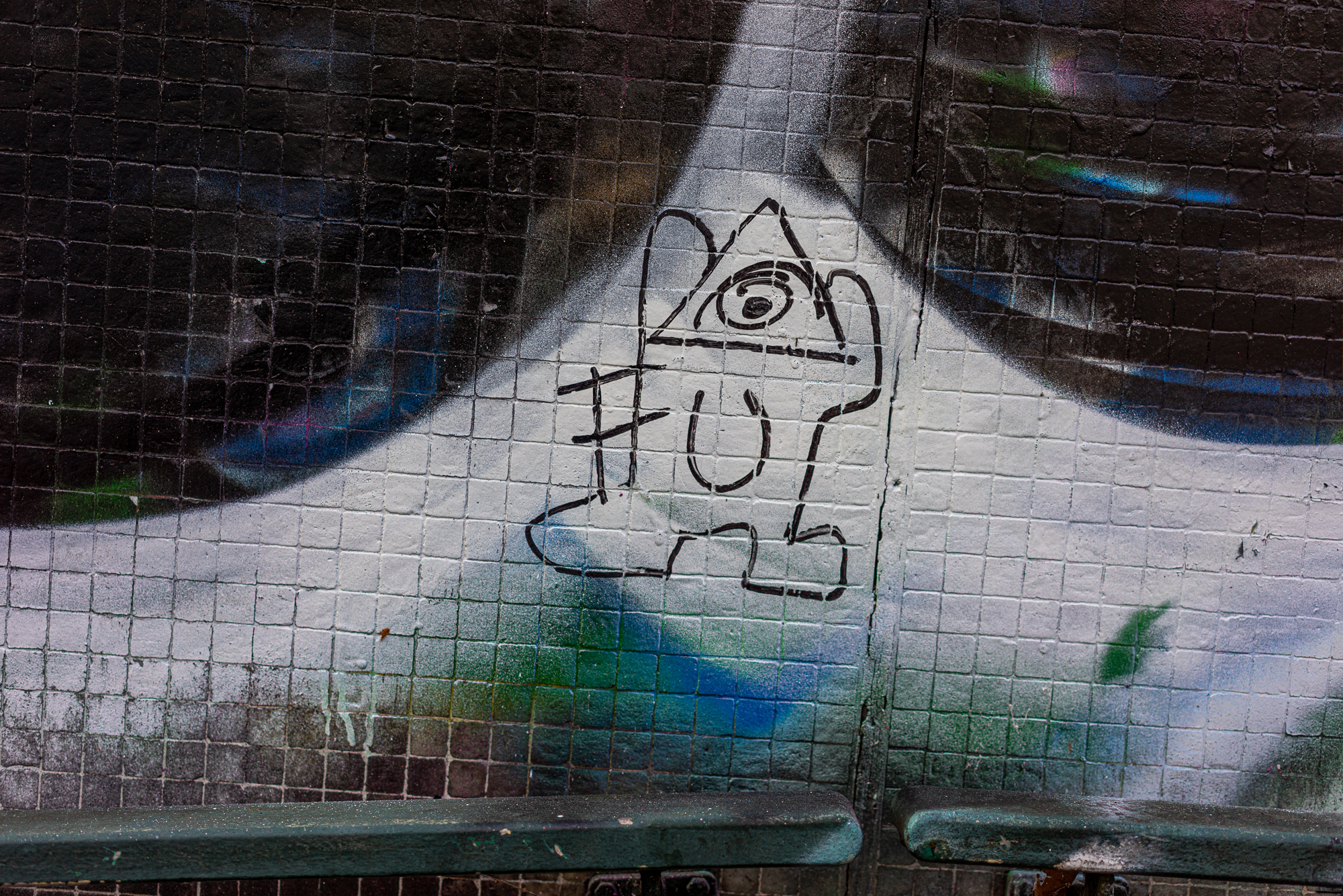 I returned to the Underpass today before visiting the Martin Parr Foundation for talks by Magnum photographers Jim Goldberg and Alessandra Sanguinetti. There were fewer deposited objects today, just clothing, some cans and a pizza box. I enjoy the personal items, I derive a better sense of attachment to people who use the underpass. The graffiti and written words seem more distant to me, like hieroglyphics, a different language, statements I struggle to understand. I guess connection is important….